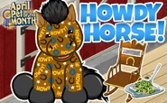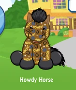 The Howdy Horse is a Webkinz pet that was released in February 2014. It doesn't have a Lil'Kinz version. It was Pet of the Month in May 2018. It isn't retired. Its pet specific item is the High Noon Chair and its pet specific food is Lasso Linguine.