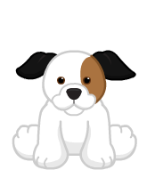 The Jack Russell has black folded ears that point downward, a black nose, and brown eyes with black irises. Their main body colour is white. They also have a large light brown spot on the left of their face that covers around a quarter of their face, surrounding their left eye and covering their left cheek. They also have a longer snout, and a short tail. On their back, they have 2 medium sized black patches on the top of their back, with one being closer to their front legs and head, and the other surrounding their white tail. Their Magic W is located on their right paw.