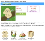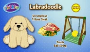 The Labradoodle was released in November 2011. It has been Pet of the Month for October 2015, doesn't have a Lil'Kinz, and isn't retired. Its pet specific food is the Scrumptious T-Bone Steak and its pet specific item is the Tennis Ball Swing.