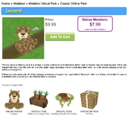 The Leopard is a regular Webkinz pet that was released in January 2007. It has a Lil'Kinz version, was Pet of the Month in September 2009, and isn't retired. Its pet specific food is the Garlicky Gazelle Tenderloin and its pet specific item is the Wilds of the Jungle Sofa.