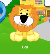 The Lion Webkinz was released in April 2005. It has a Lil'Kinz version, isn't retired, and was Pet of the Month in April 2010. It was featured in the video It's Good to be the King. Its pet specific food is the Zebra Dog and its pet specific item is the King of the Jungle Throne. It has a Figurine, the Fraidy Cat Lion.