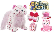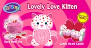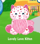 The Lovely Love Kitten is a Webkinz pet that was released in January 2014. It was exclusive to the Ganz eStore. It doesn't have a Lil'Kinz version. It was Pet of the Month in February 2017. It isn't retired. Its pet specific item is the Candy Heart Couch and its pet specific food is Rose Petal Tea.