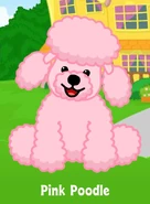 The Pink Poodle is a regular Webkinz pet that was released in June 2006. It has a Lil'Kinz version, and was Pet of the Month for April 2008 and for October 2010, being featured in the Webkinz music video "I Dream in Pink." Its pet specific item is the Pink Poodle Cadillac and its pet specific food is the Pink Poodle Parfait.