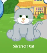 The Silversoft Cat is a Webkinz pet that was released in November 2009. It was the Pet of the Month for June 2011, it isn't retired, and doesn't have a Lil'Kinz. Its pet specific food is the Nifty Noodle Yarn Ball and its pet specific item is the Culinary Cat Counter.