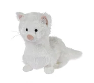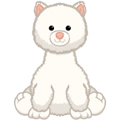The Snow Cap Ferret is white and fluffy with a light pink nose and light pink ears. It has long whiskers.