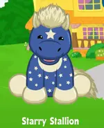 The Starry Stallion is a Webkinz virtual pet that was released in July of 2013. It is not retired, does not have a Lil'Kinz, and has not been Pet of the Month. Its pet specific food is Starry Snacks, and its pet specific item is the Stargazing Deck.