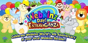 The Webkinz Day Extravaganza (also stylized as Webkinz Day ExtravaGANZa) was an event first held from April 25th to 27th, 2008 and again from May 1st to 3rd, 2009. The event was held to celebrate the anniversary of Webkinz World, with different activities taking place both years.